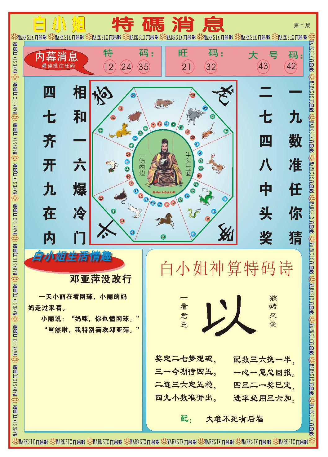 说明: 提供的内容.只用在合法的⑥合彩资料探讨.不适用于其它